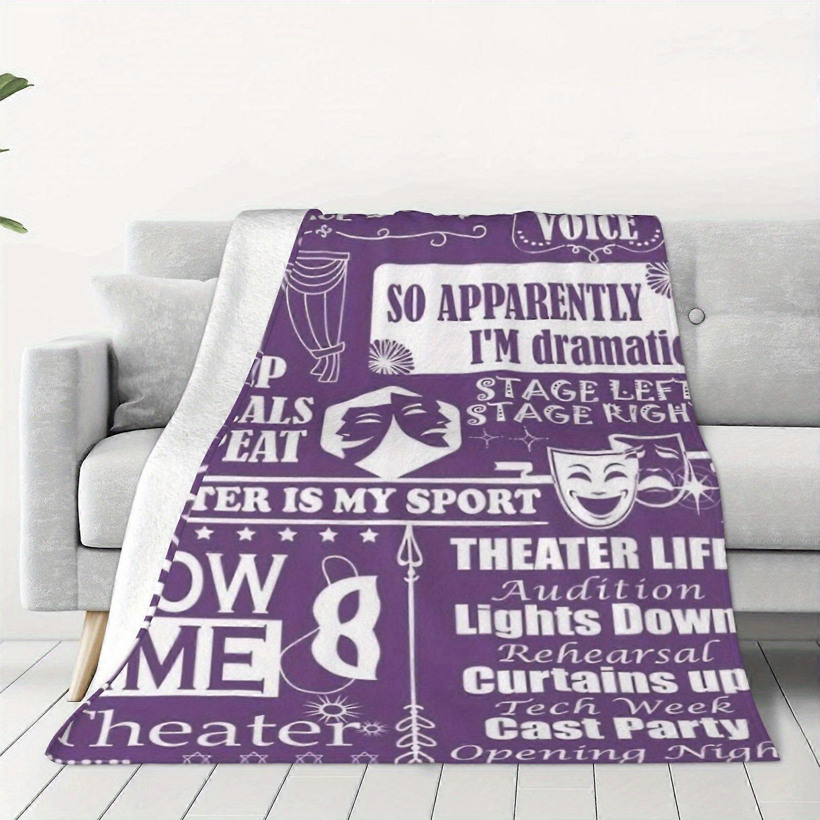 Couverture de luxe à thème dramatique - Couvre-lit doux en flanelle, confortable en toutes saisons, avec lettrage et motifs de personnages sur le thème du théâtre, pour canapé et lit - AZOKJ163
