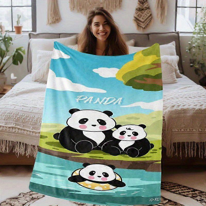 Cozy Panda Illustration Grass Play Style Flannel Blanket - Soft and warm flannel blanket with a comfortable texture, sui-BGFDS22