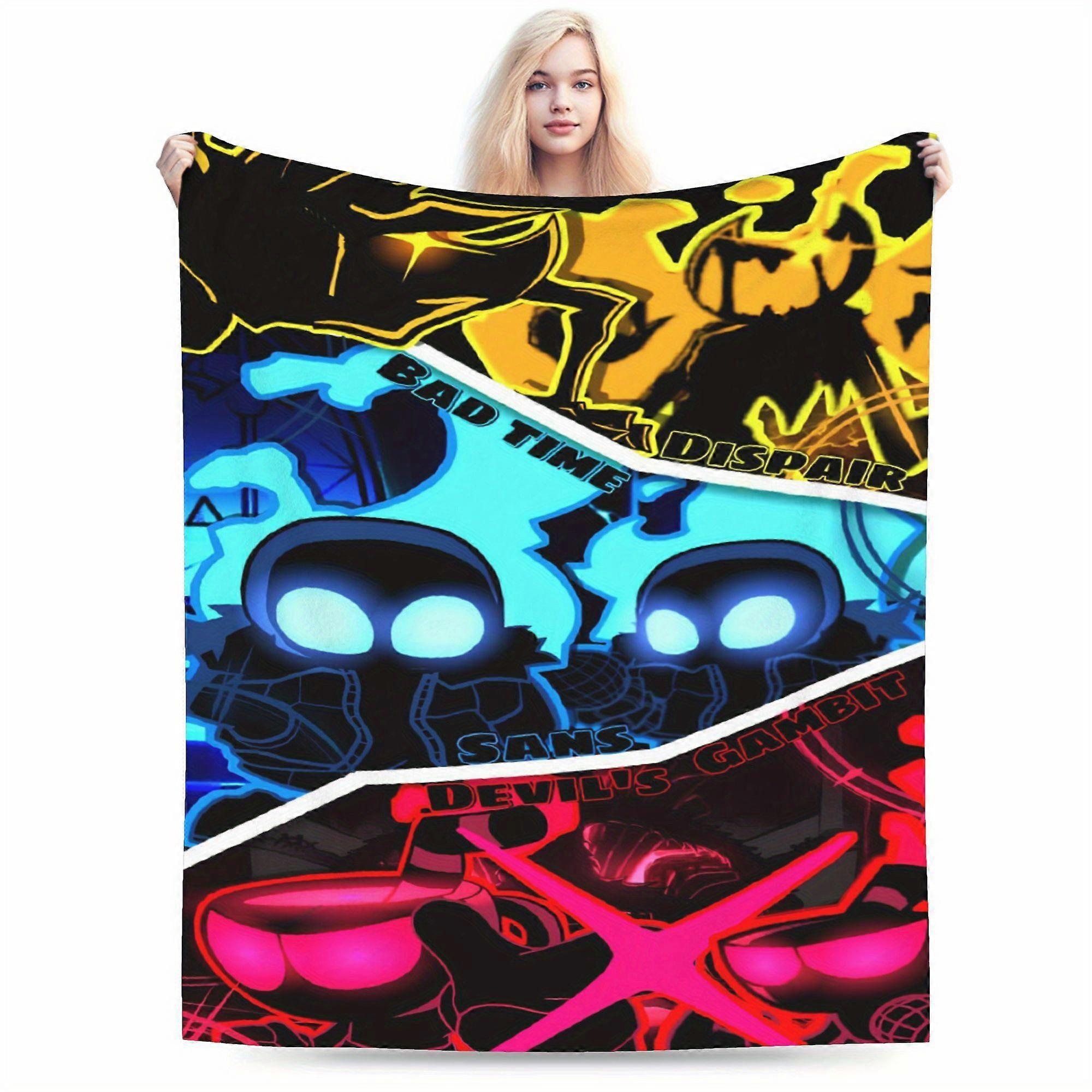 Gaming Blanket for Couch, Bed, Office, Travel - Soft Flannel Throw with Neon Accents - All-Season Cozy Gamer Decor - Per-EDCVB312