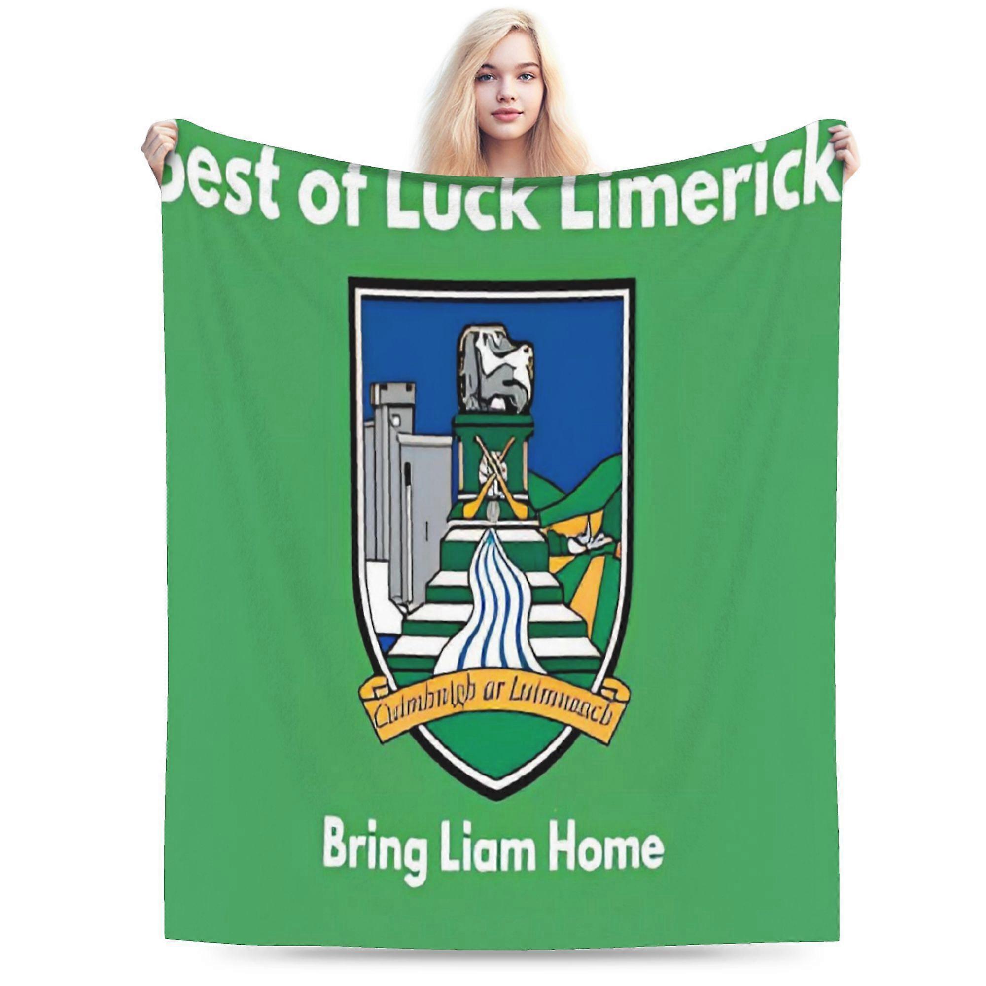 Limerick-Themed Plush Blanket - Lightweight & Portable, Green with White Shield & Lion Emblem Design, Perfect for Living-AZXUY6