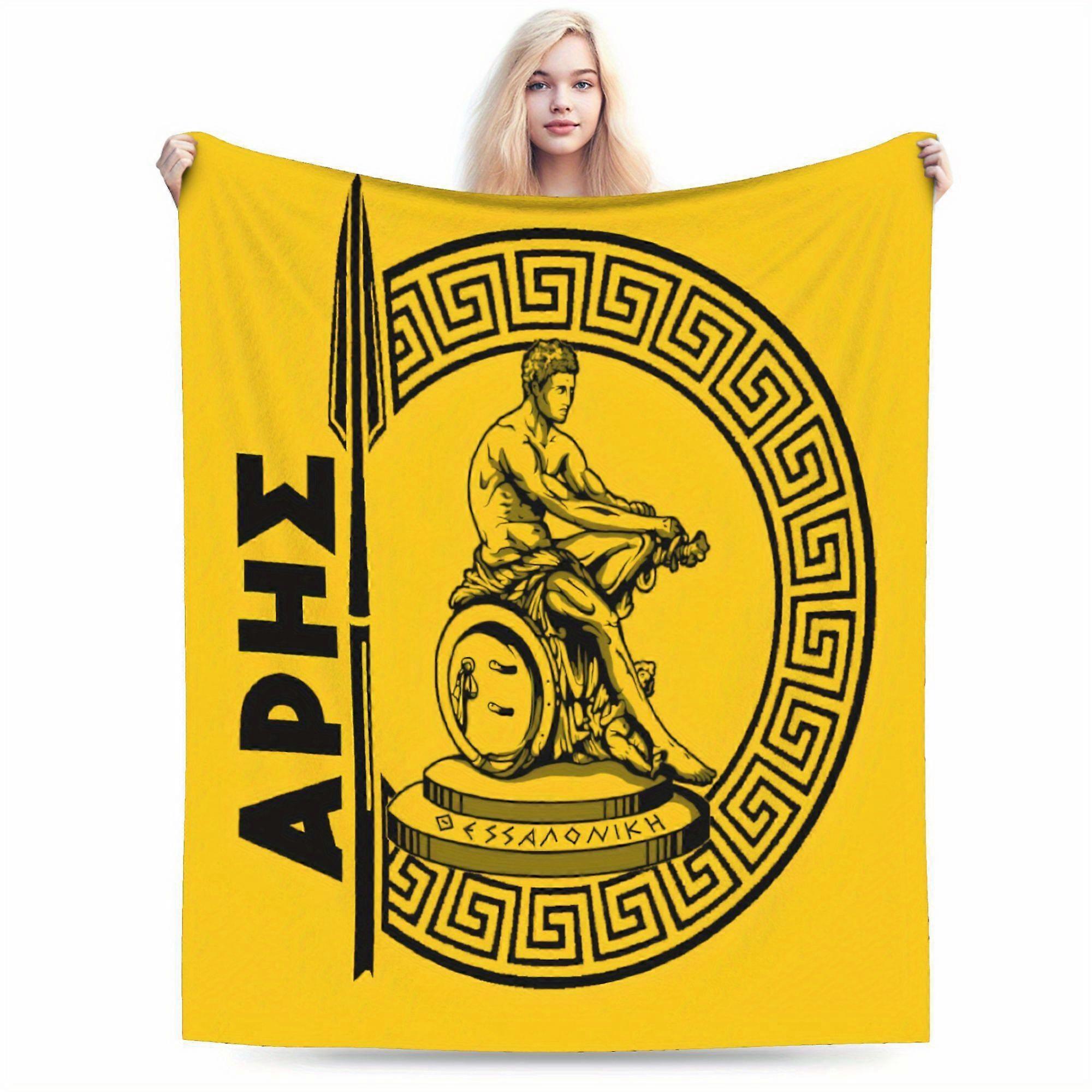 Aris Thessaloniki FC Plush Blanket - Soft Flannel All-Season Throw with Greek Club's(APH letters & Spartan Symbols), Mus-AZXUY71