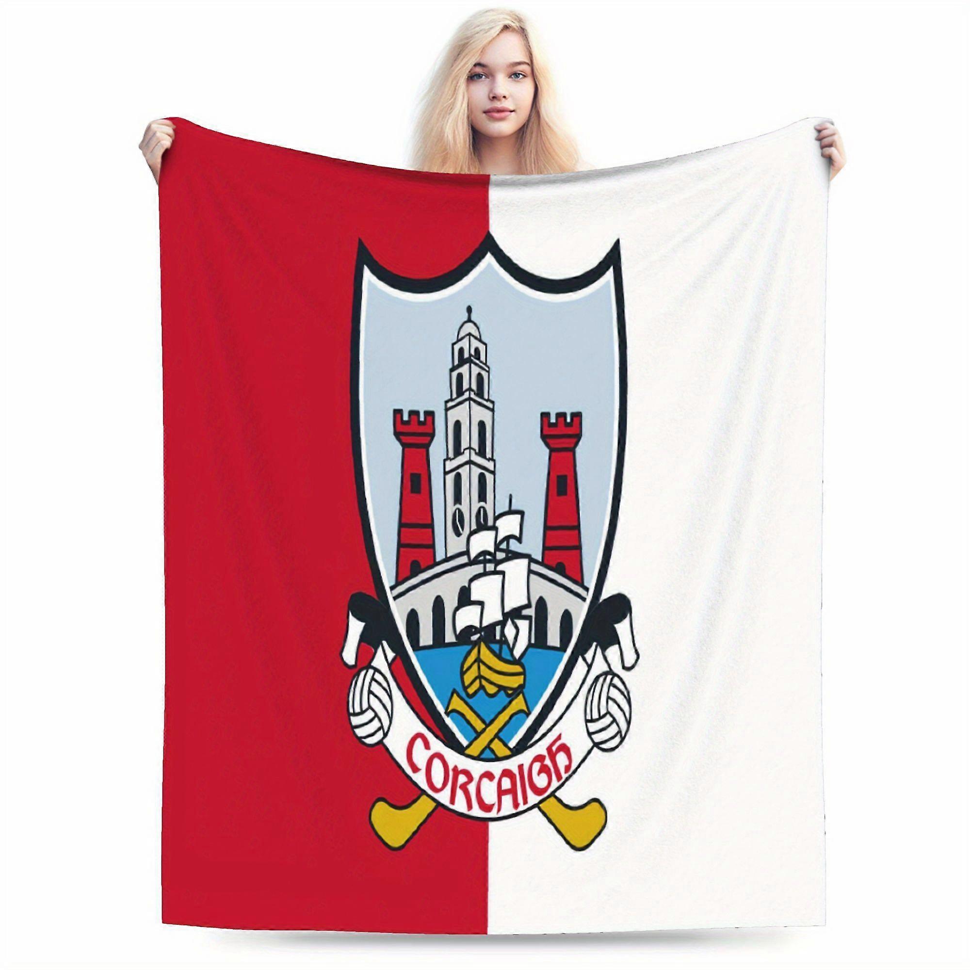 Cork County GAA Crested Shield & Sword Design Flannel Blanket - Soft Touch All-Season Throw with Red/White/Blue Shield E-AZXUY61