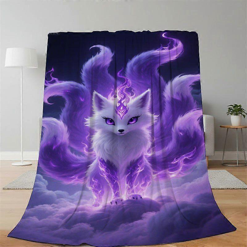 Luxury Nine-Tailed Fox Flannel Blanket - Plush Soft Warm All-Season Bedspread Suitable for Couch, Bed, Camping - Bold Fo-POTEA187