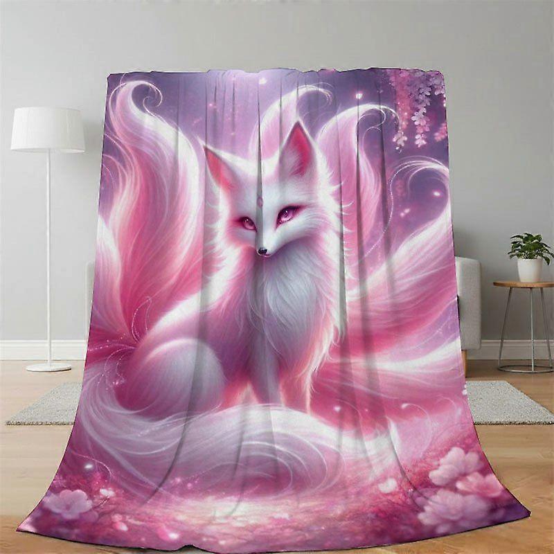 9-Tailed Fox Art Flannel Blanket | Soft, Warm, Multi-Purpose for All Seasons, Sofa, Office, Travel, Camping, Machine Was-POTEA309