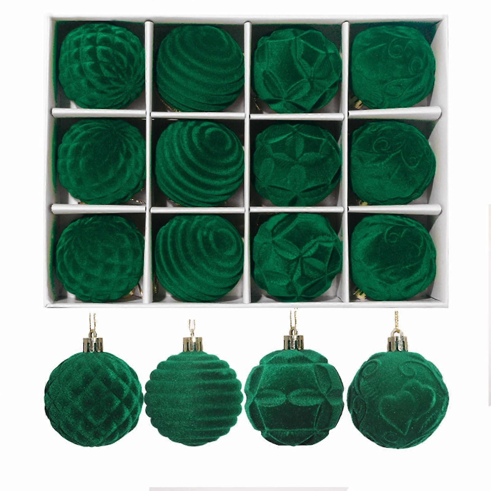 BGZLEU Velvet Ornaments for Christmas Tree - 12pcs Army Green Flocked Ball Ornaments, 2.36" (Compatible with all standard trees)