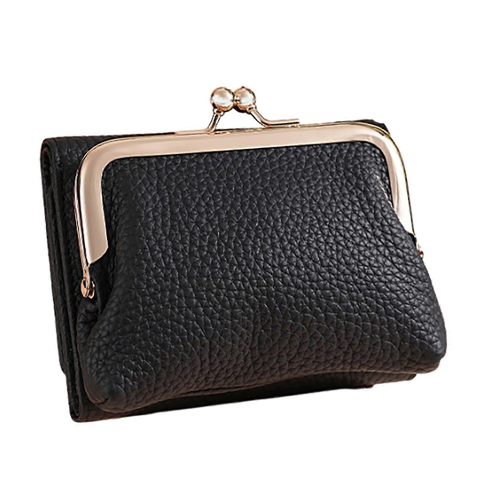 Slim Ladies Purse with Kiss Lock Pocket Coin Pouches and Credit Card Slots Change Pocket Short Wallet for Women Pink