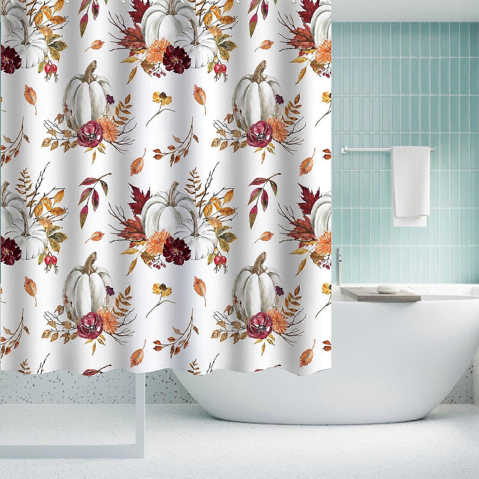 Pamqxs Fall Shower Curtains for Bathroom, Polyester Printing Shower Curtain Set Compatible with Autumn Thanksgiving Pumpkin Decor