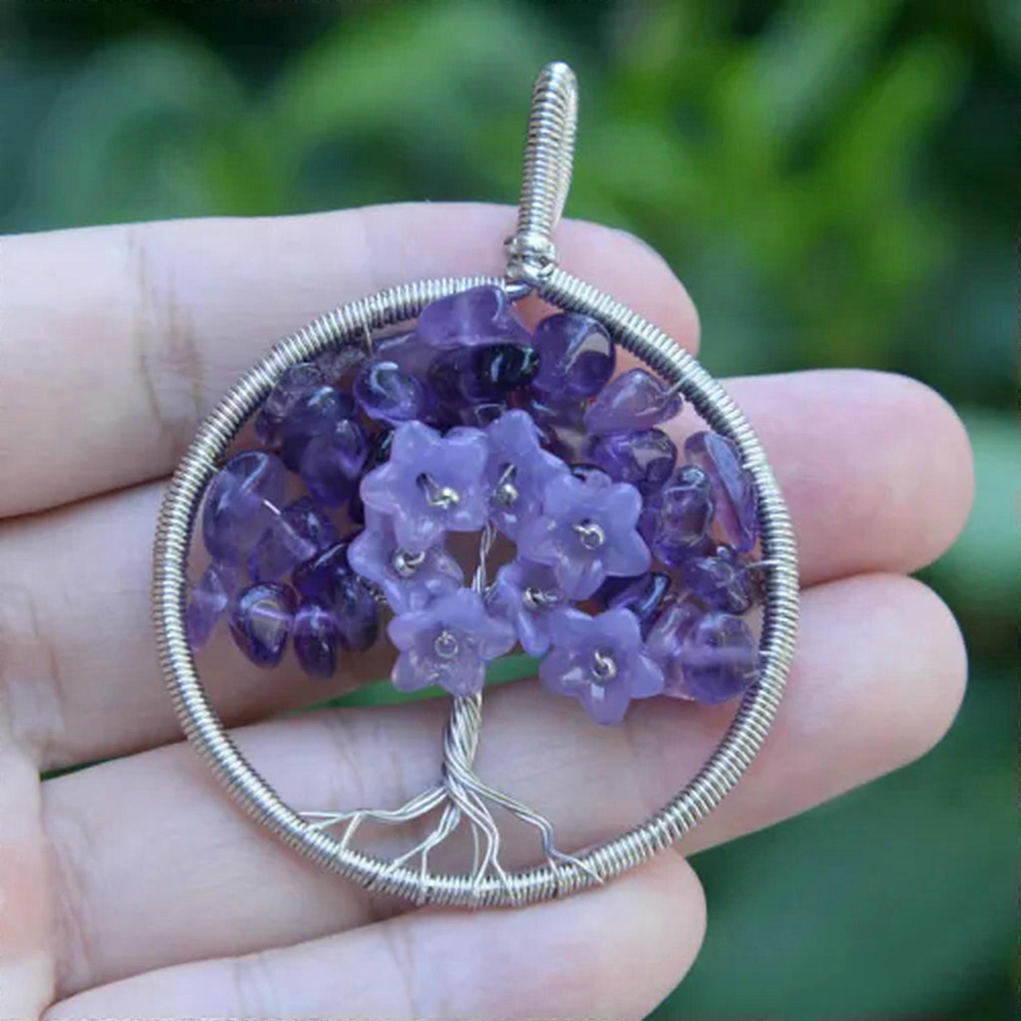 RSAMD 1pc Natural Tree of Life Chakra Crystal Stone Pendant Flower Energy Reiki Amulet-Amethyst