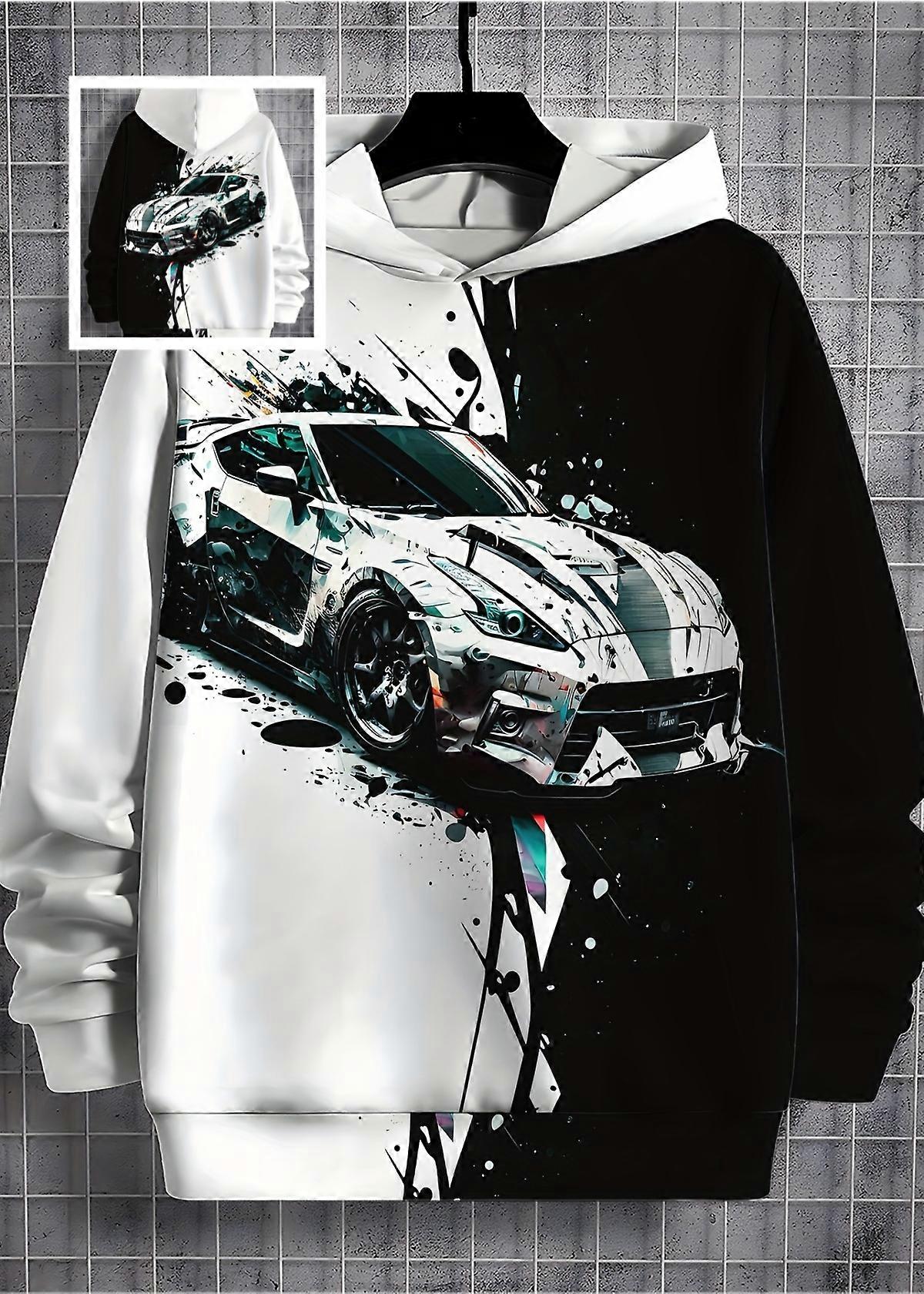Children and Adults Unisex Spring and Autumn Car Graffiti 3D Printing Long-sleeved Hoodie Outdoor Leisure Street Fashion Wearing