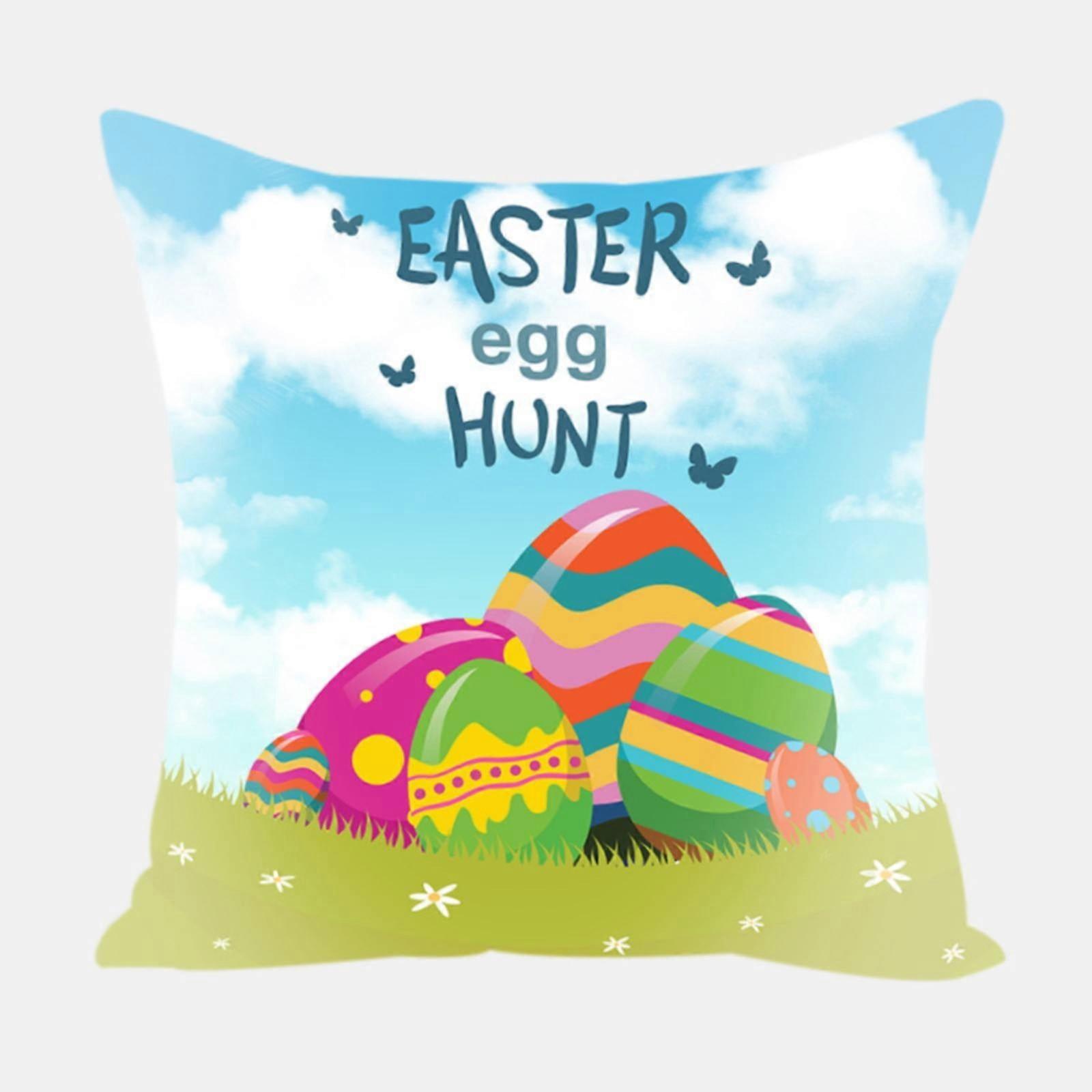 Easter Pillow Covers 18x18 Inch, Pure Cotton Bunny Egg Floral Print Set, Happy Easter Linen Cushion Cover, Compatible with Holiday Decor