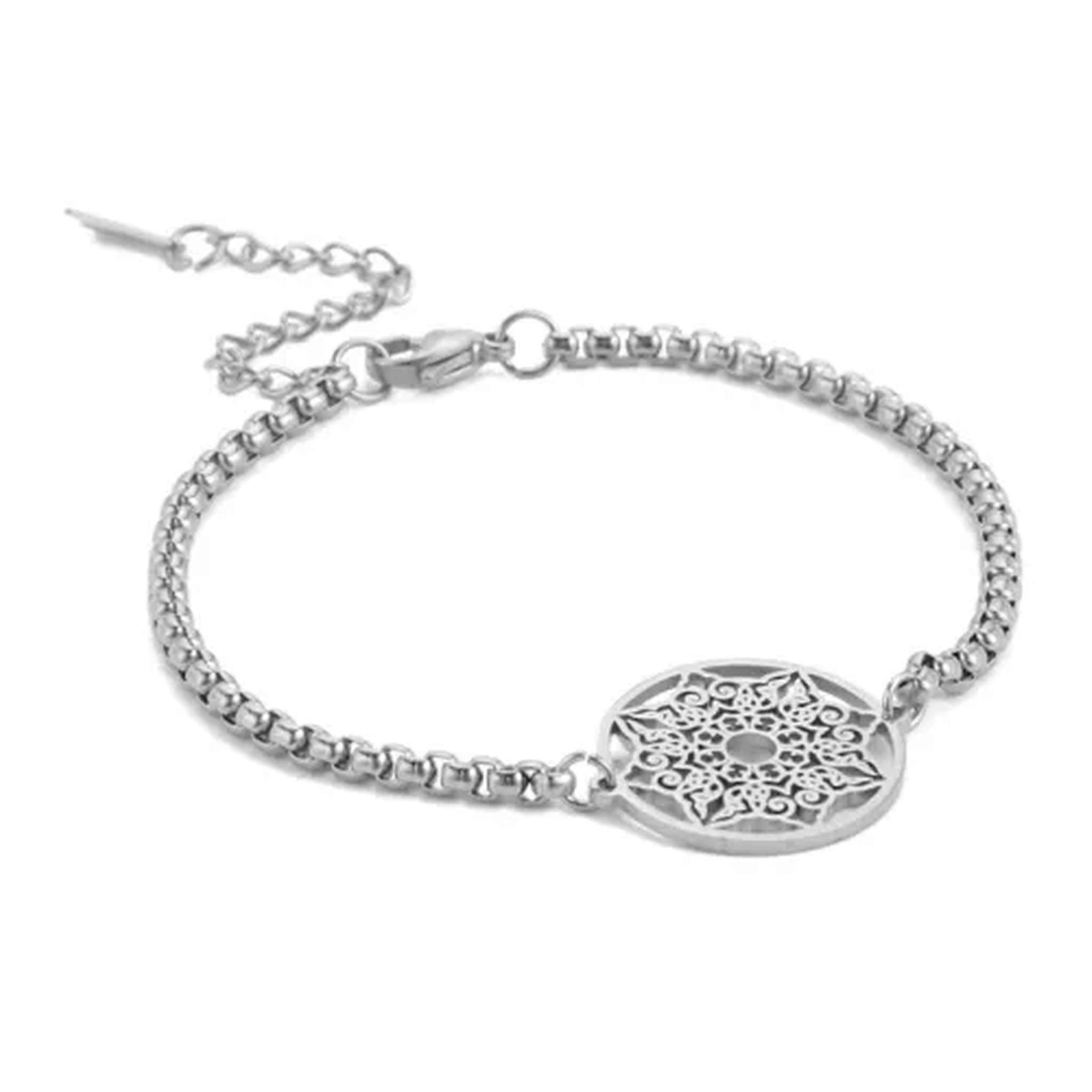RSAMD Vintage Filigree Flower Charm Box Chain Women's Bracelet Jewelry Friend Gift-Steel