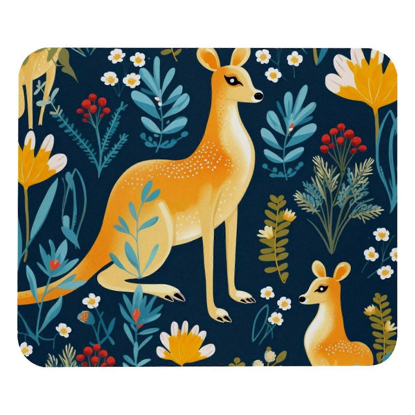Square Mouse Pad 8.3x9.8 Inch, Kangaroo Leaf Cartoon Design with Stitched Edge, Non-Slip Rubber Base for Laptop Gaming & Home Office Decor
