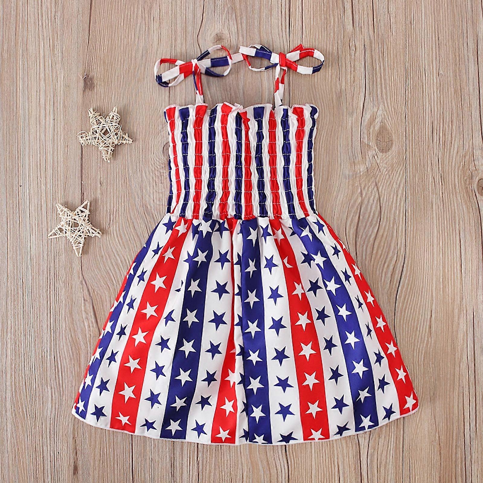 Shldybc Girls' Fourth of July Dresses Casual Sleeveless Patriotic Clothing