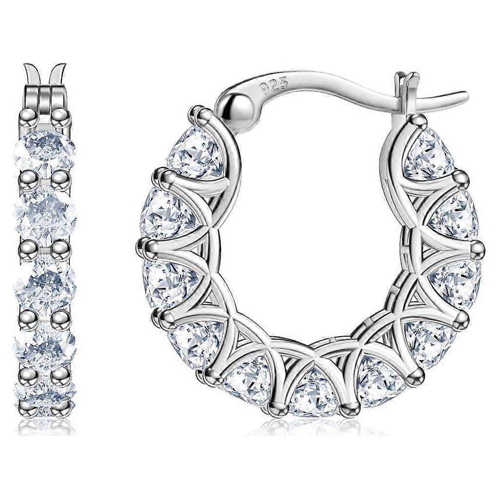 AllenCOCO 14K White Gold Plated Sterling Silver Simulated Diamond Cubic Zirconia Hoop Earrings, Hypoallergenic, 16-19mm
