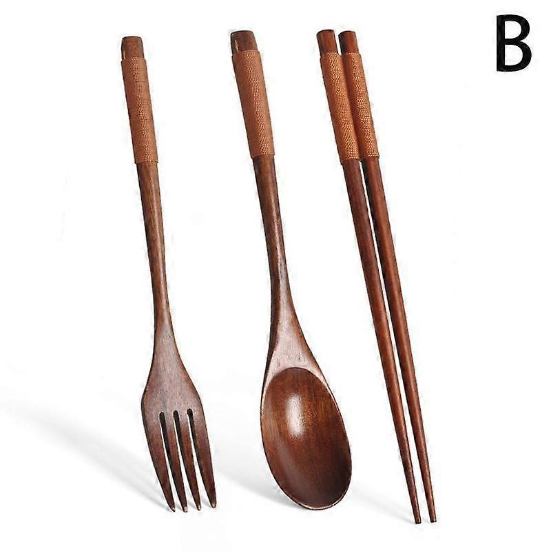 3 Kinds Of Sets Wooden Tableware Set Spoon Fork Chopsticks Wooden Cutlery Set Tableware Flatware Portable Household Supplies