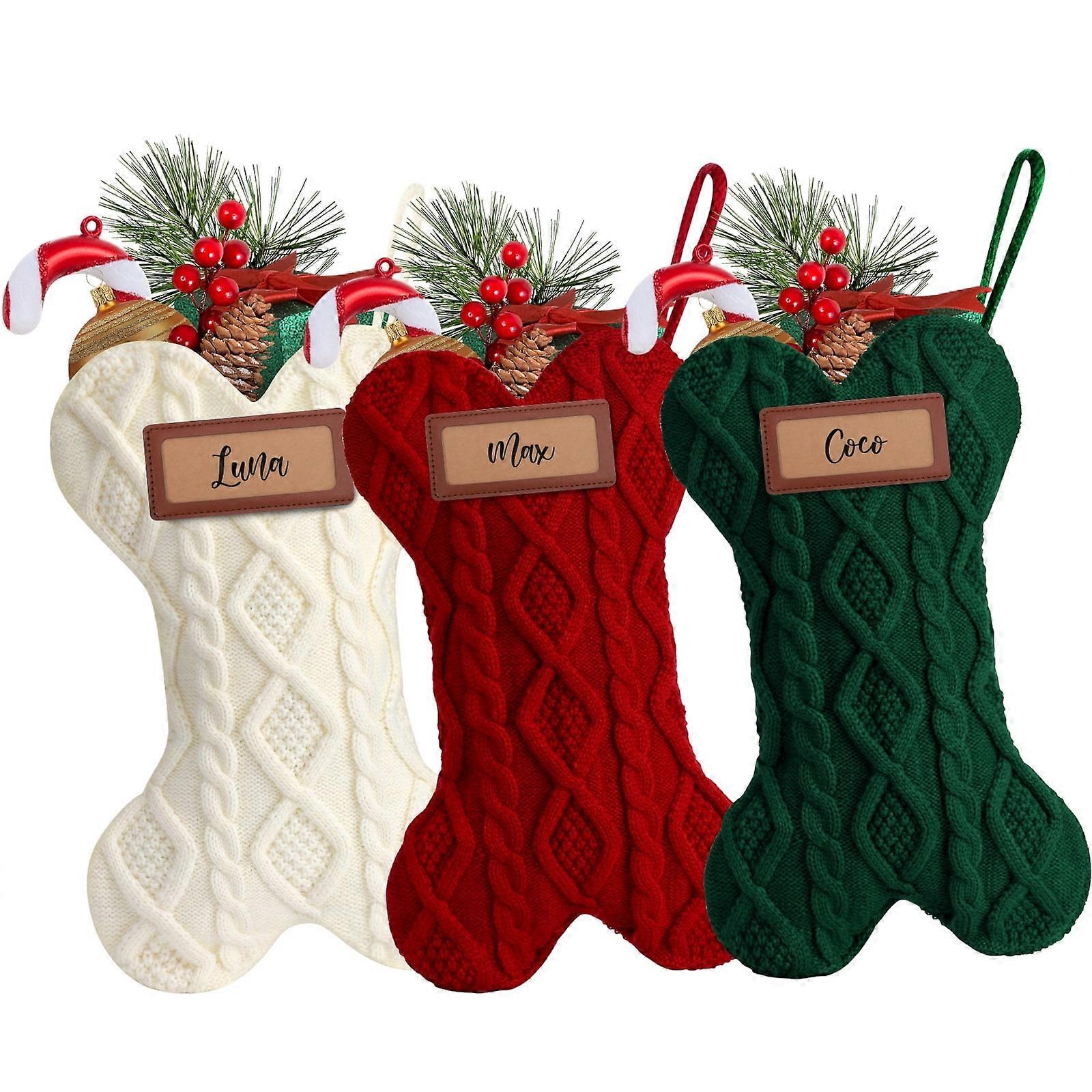 Ayieyill 3pcs 18" Dog Christmas Stocking, Knit White Diamond Pet Stockings for Large Dogs, Hanging Xmas Stocking for Pets