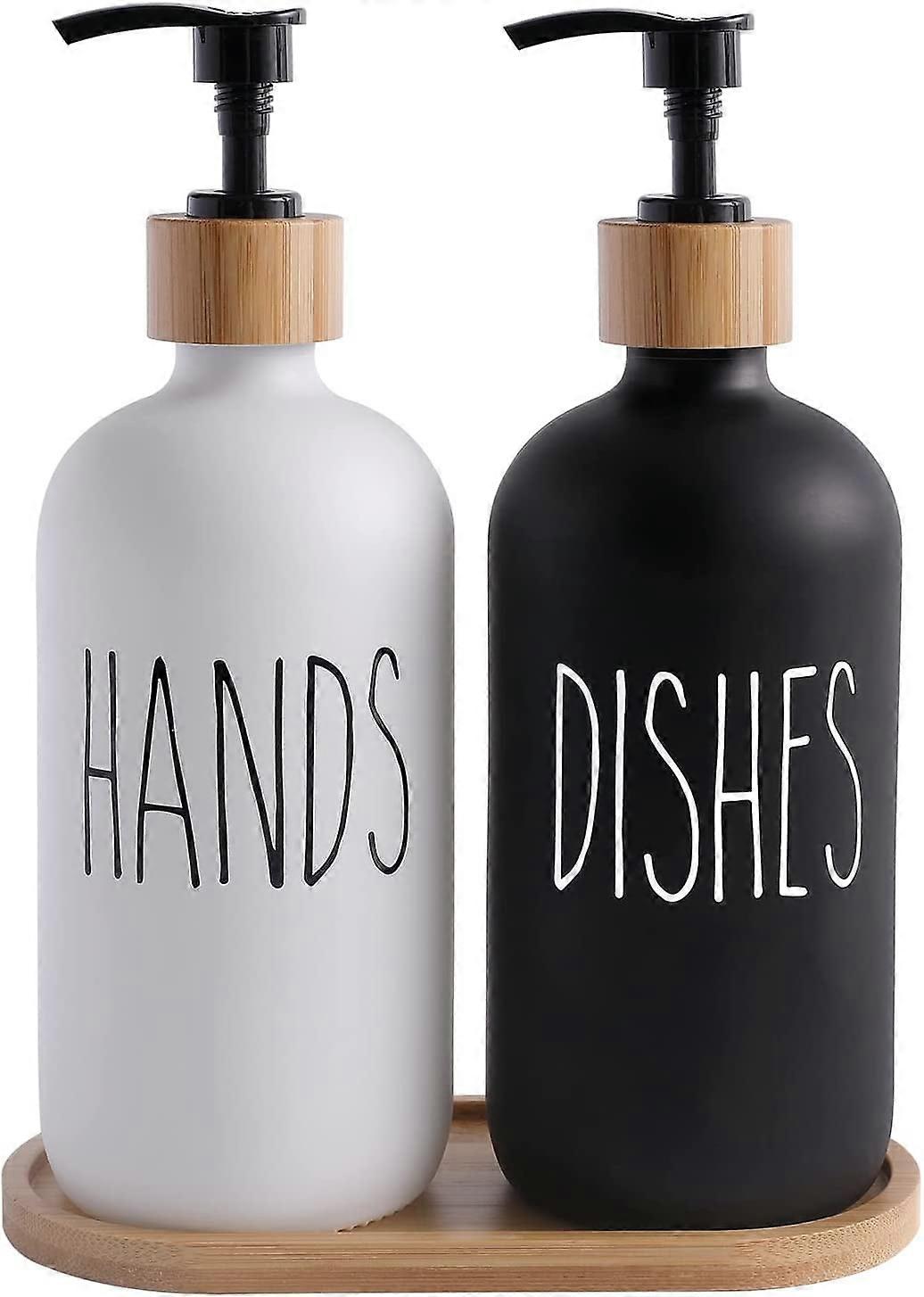 HOUFIY Glass Soap Dispenser Set, Compatible with Kitchen Decor, Includes Hand & Dish Soap Dispensers for Black/White Kitchens