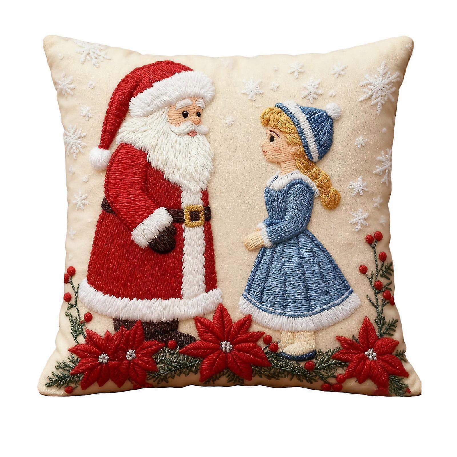 Christmas Throw Pillow Covers 17.5"x17.5" Linen Santa & Tree Plaid, Compatible with Xmas Sofa Decor, Invisible Zipper