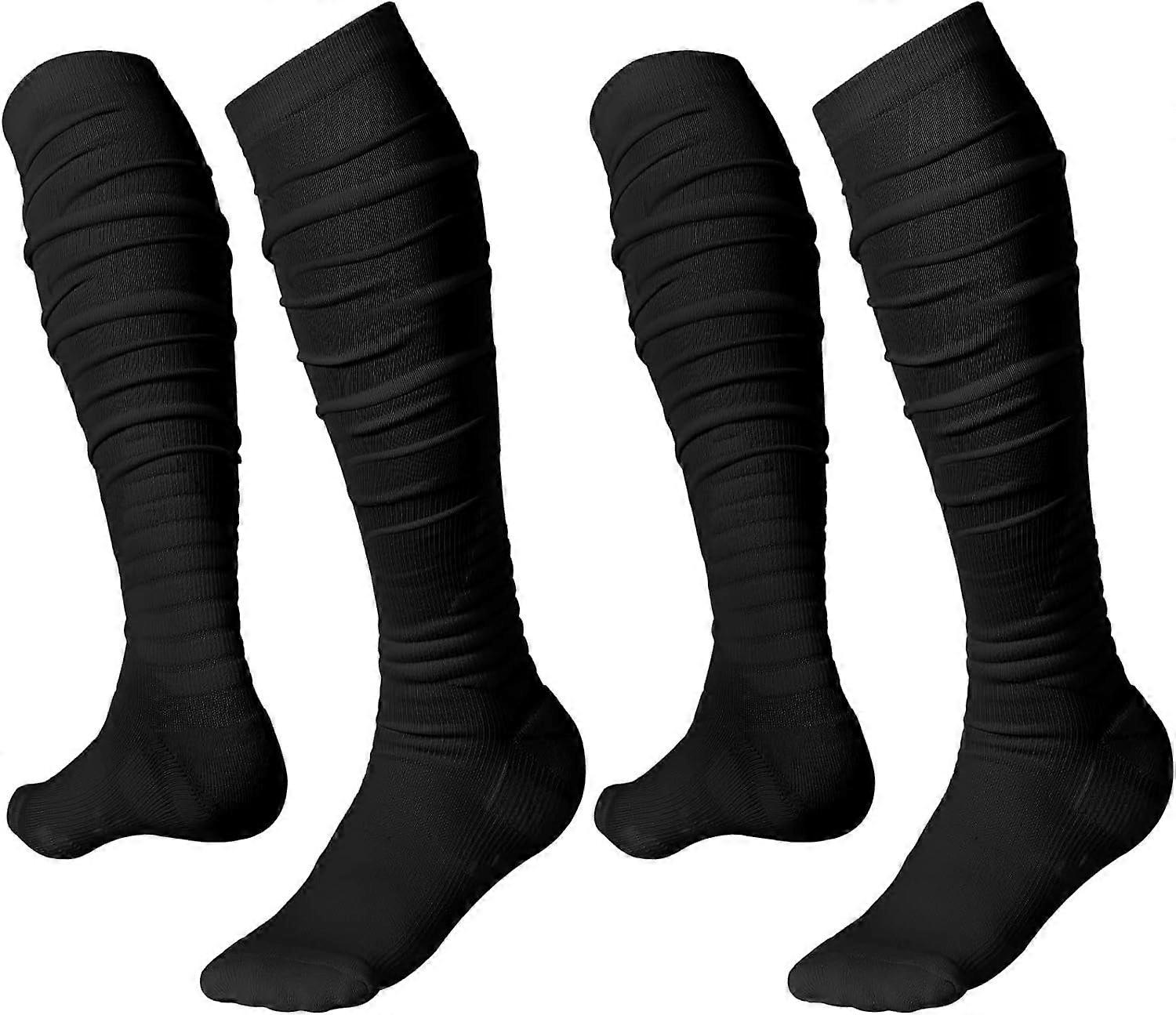 2 Pairs Scrunch Football Socks Non Slip Men Soccer Socks, Long Socks with Ankle Support Padded Knee High Athletic Socks for Youth Adult