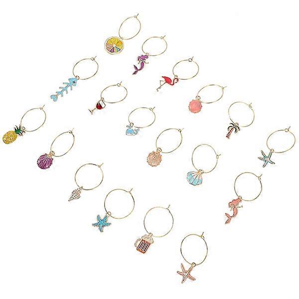 18 pcs Beach Gifts Wedding Swing Glass Markers Drinking Glass Identifiers Animal Glass Marker Glass Wave Markers Tropical Glass Markers