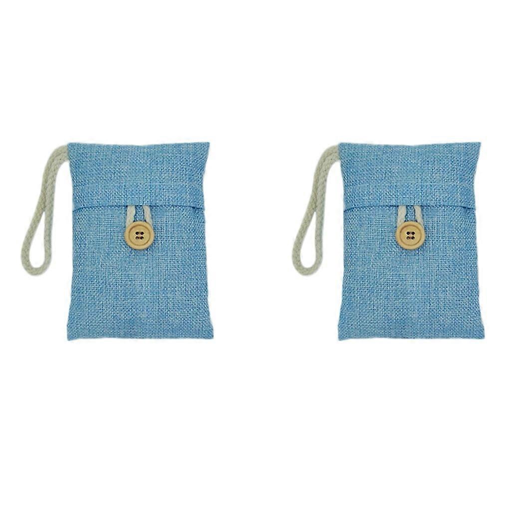 2Pc Bamboo Charcoal Bags for Odor Removal, Formaldehyde Absorber, Linen Air Freshener with Activated Carbon, Blue – Compatible with Car, Home,