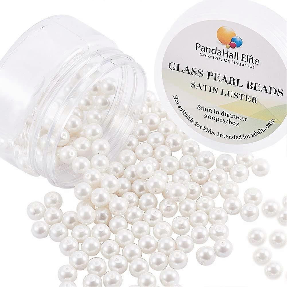8mm Pearl Beads 200 Pcs, Satin Luster Glass Round Spacer Beads for Jewelry DIY, Earrings, Bracelets, Necklaces, Craft, Anti-Flash White