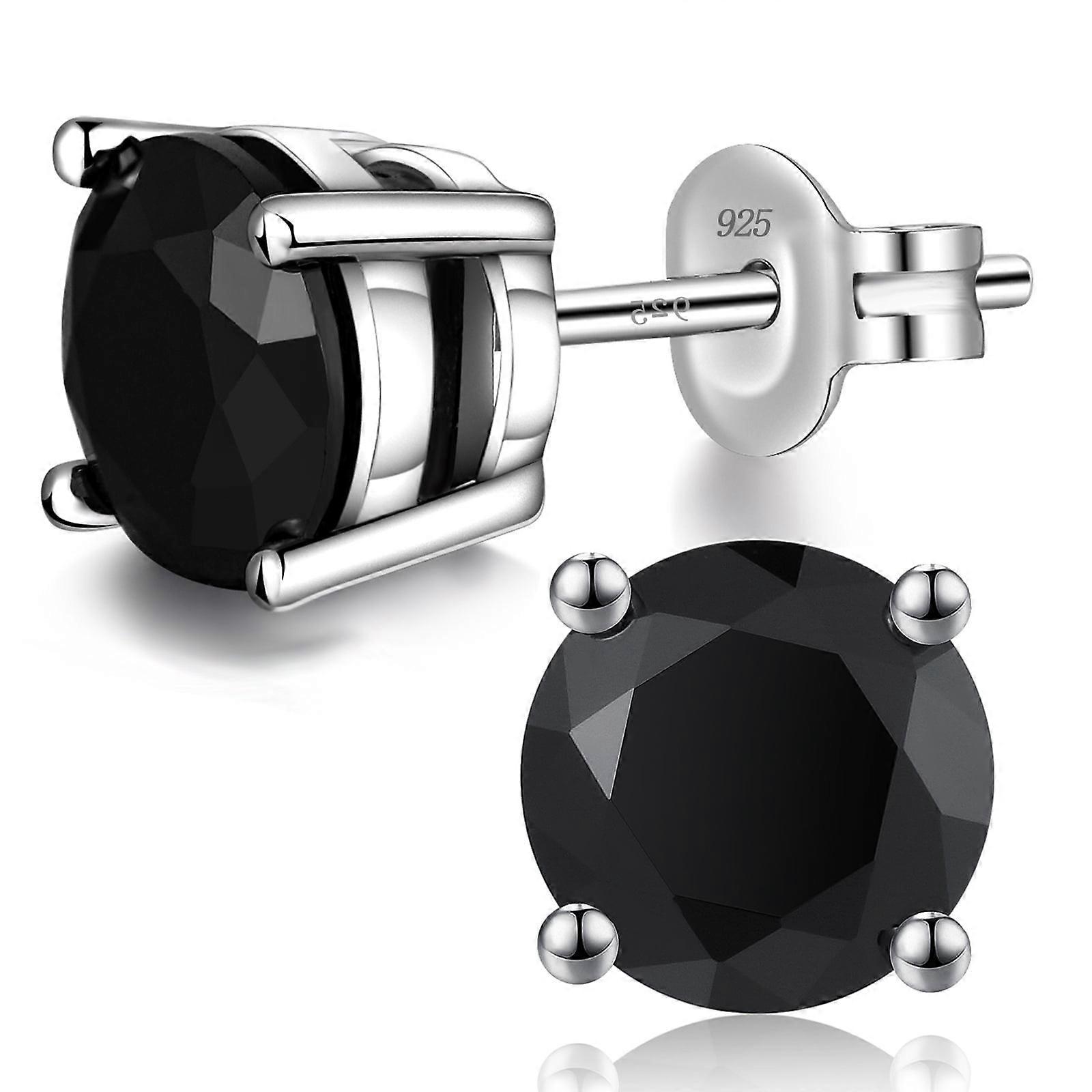Black Stud Earrings 7mm, Sterling Silver with Black Cubic Zirconia, Diamond-Like Earrings for Men & Women