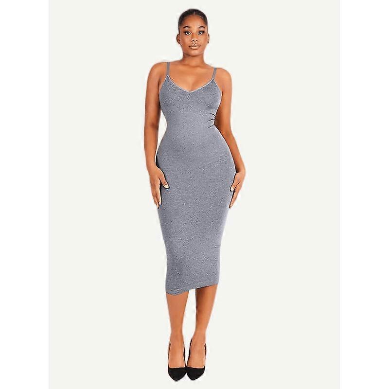 FeelinGirl Seamless Spaghetti Strap V-neck Maxi Built-in Shaper Dress Basic Casual Fabric Womenswear Deals For You Days