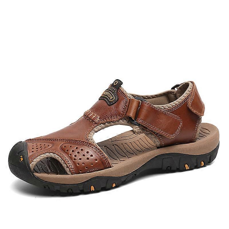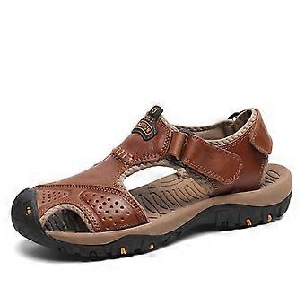 Men's genuine leather sandals with closed toe, cowhide, outdoor breathable, versatile, everyday casual shoes.