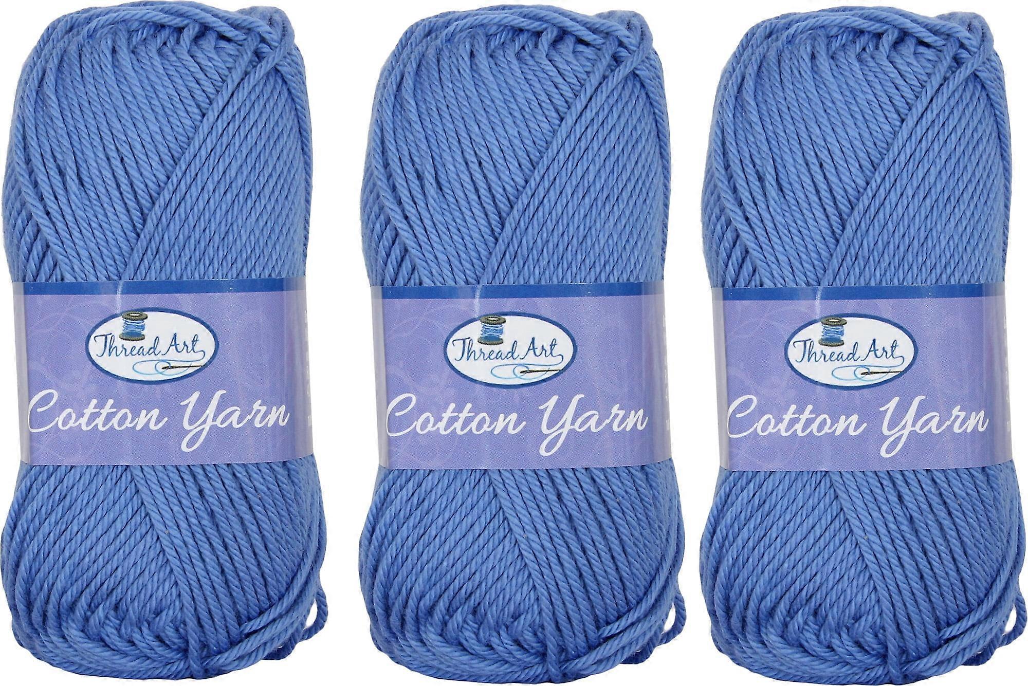 3 Pack of 100% Pure Cotton Crochet Yarn by Threadart | Periwinkle | 50 gram Skeins | Worsted Medium #4 Yarn | 85 yds per Skein - 30 Colors Available