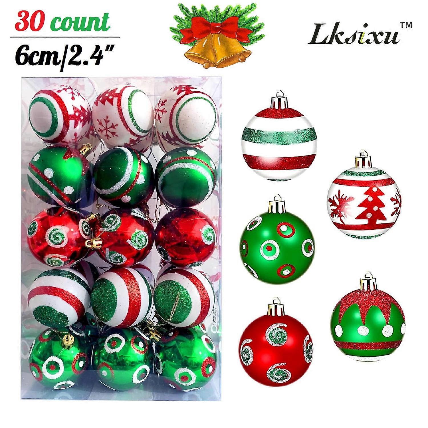 Lksixu 30 Pcs 2.4" Christmas Balls Ornaments, Hand-Painted Glitter Shatterproof Xmas Tree Decorations, Holiday Party Baubles