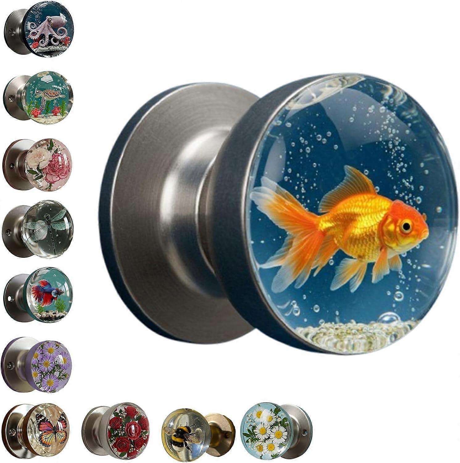 Unique Retro Round Resin Epoxy Flower Door Knob, Transparent Animal Crystal Handle, Nature Style Decor for Bedroom (Carp)