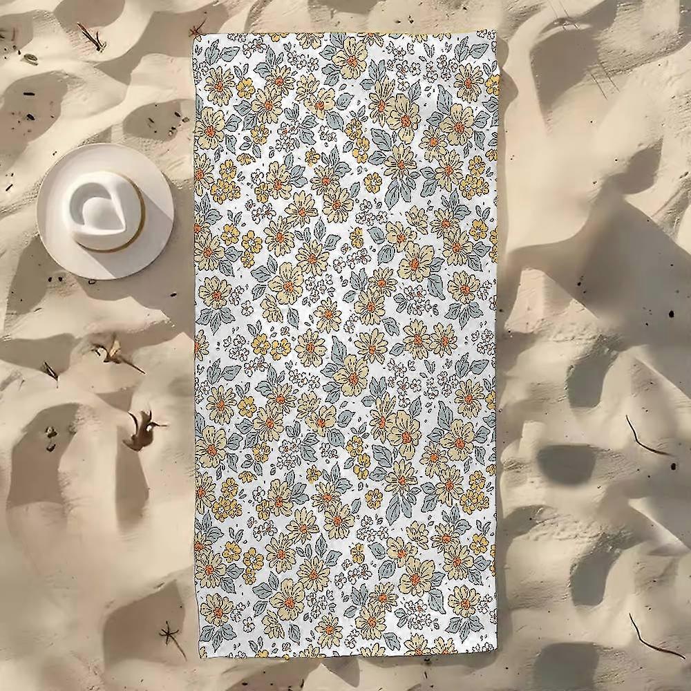 Fresh Small Floral Print Microfiber Printed Beach Towel Mountain Climbing Yoga Beach Swimming Running Absorbent Soft Towel
