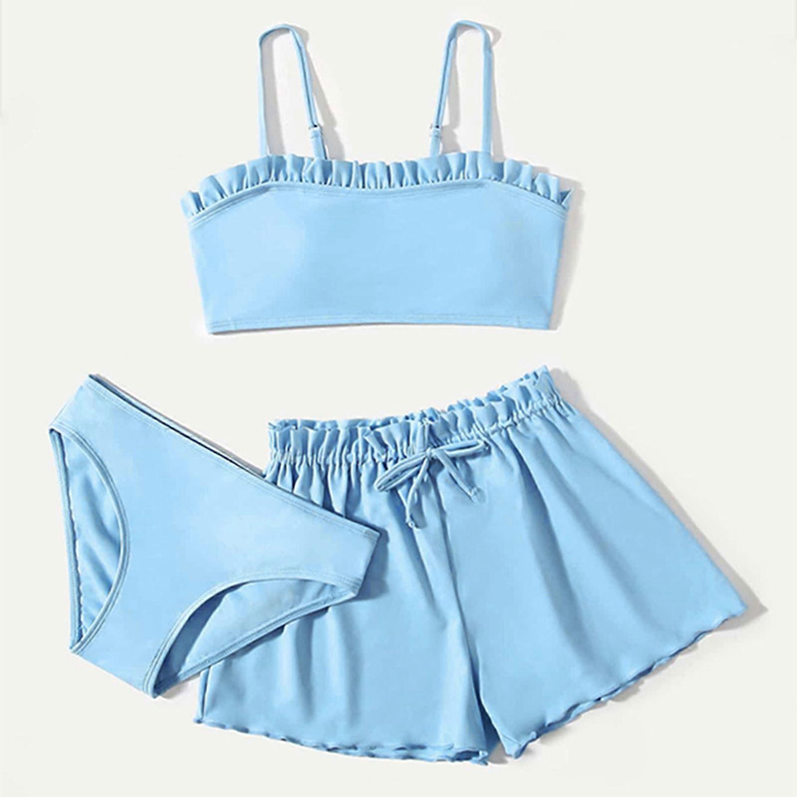 24 Month Bathing Suit Girl Toddler Girl's 3 Piece Swimsuits Soild Bikini Rullfe Bathing Suit Briefs 5t Swimsuit Girls Dinosaur