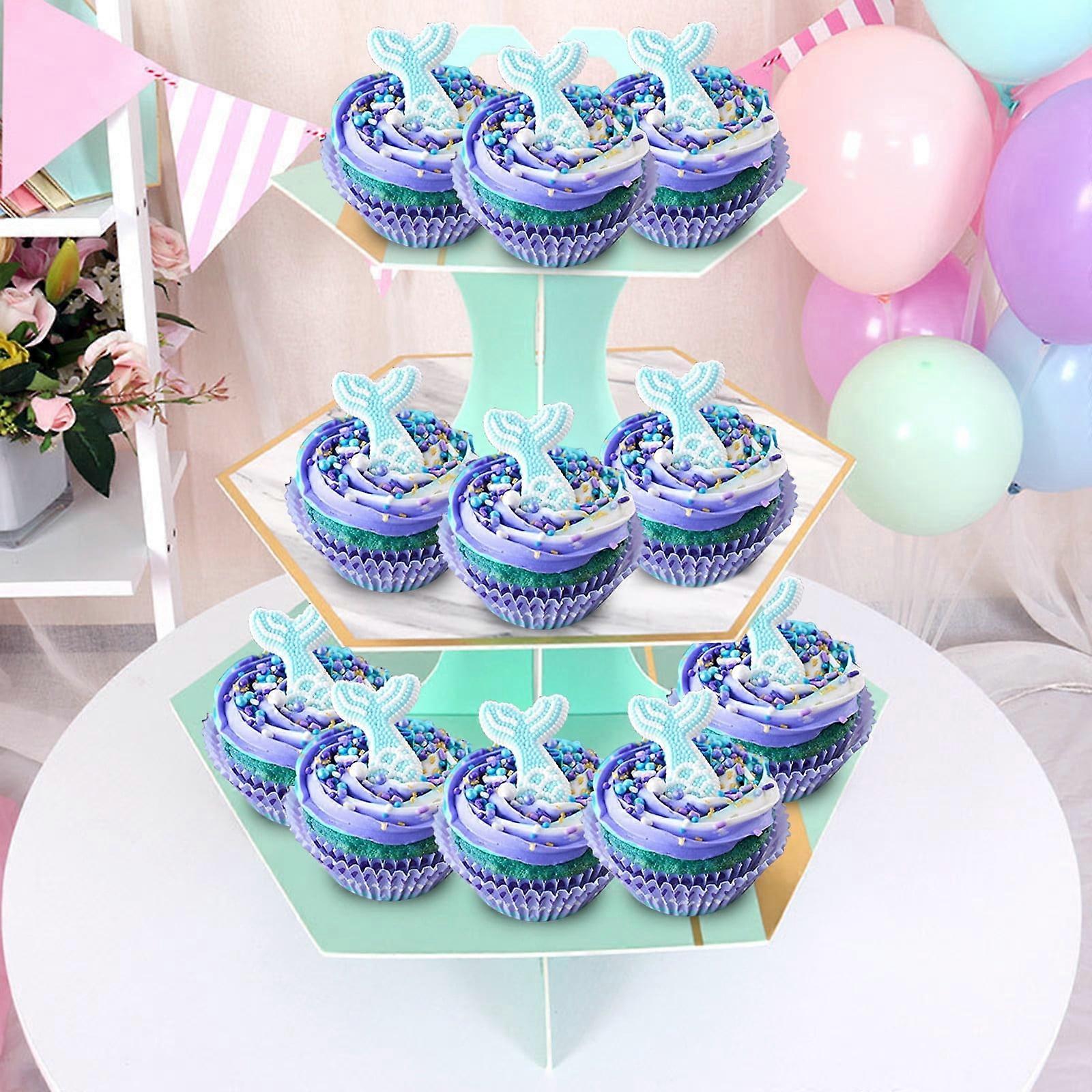 myvepuop Storage Rack 3-Tier Cardboard Cupcake Stand Dessert Tower Treat Stacker Platter Food Display Green One Size
