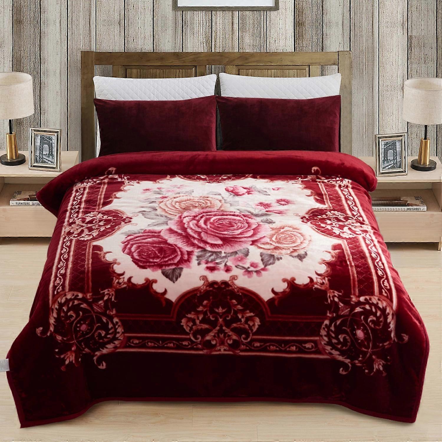 JML Soft Plush Fleece Blanket for Bed King 83"x91" 5.7lb,2 Ply Raschel Blanket Burgundy Flower