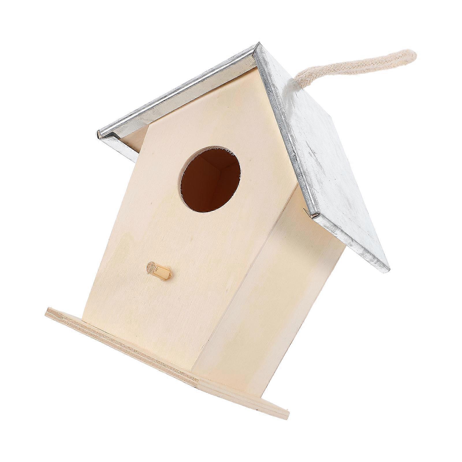 Wooden Bird House with Metal Reinforcement Weather Resistant Garden Wood Parakeet Rest House for Yard Park Tree 2pcs