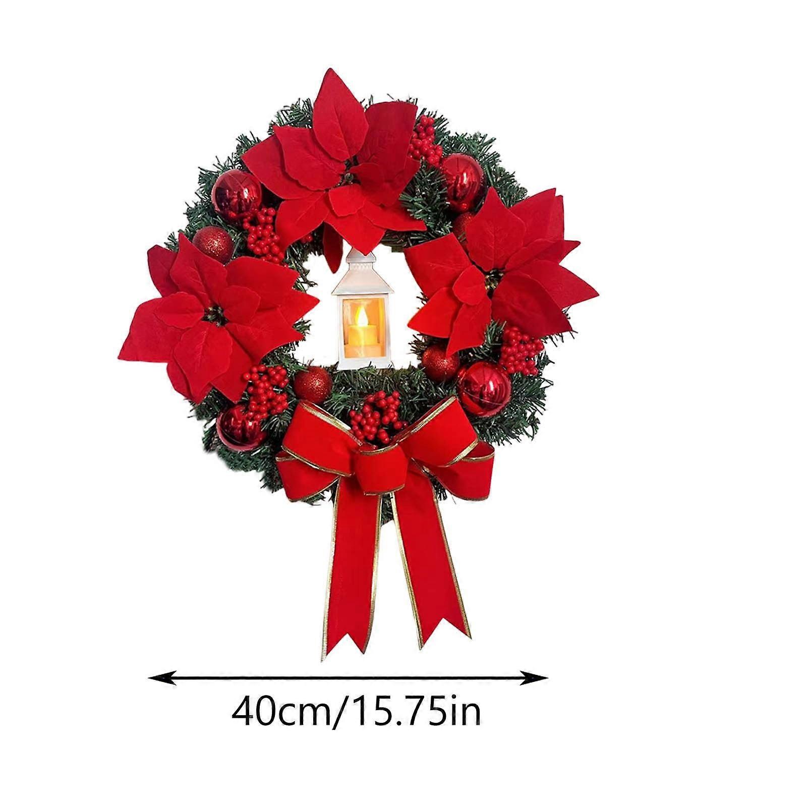 Cailmei 2024 Large Christmas Wreath for Front Door, Artificial Lighted Xmas Wreath with Bow Ribbon, Red Door Decor with Christmas Balls, Free Size