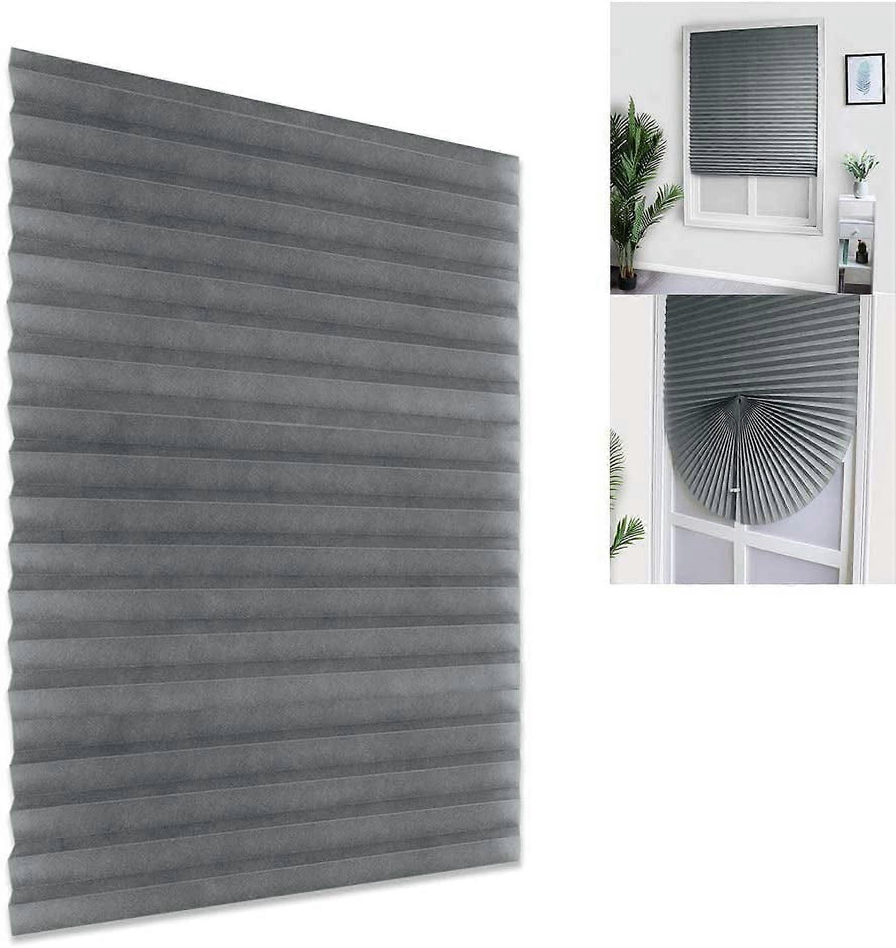 Miuline ATopoler Vertical Pleated Blinds Fabric Shade, Compatible with 60*150cm Window, Grey Temporary Roller Blind