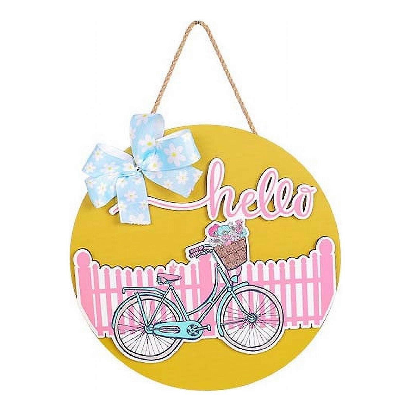 LSLJS Happy Valentine's Day Door Sign 12"x12" Rustic Wooden Wall Plaque with Flowers & Bow, Valentines Decor for Front Door Porch
