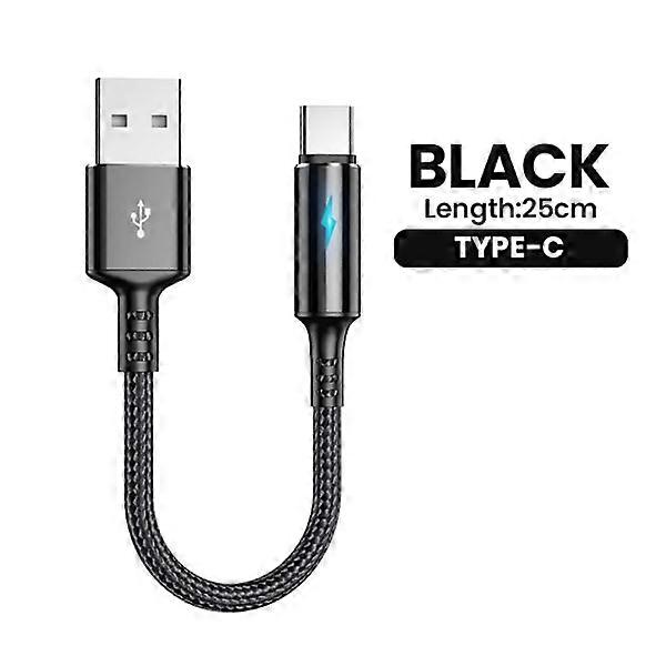 0.25m Short USB Type-C Cable, Fast Charging & Data Transfer, compatible with iPhone 13 12, iPad, Power Bank - Black