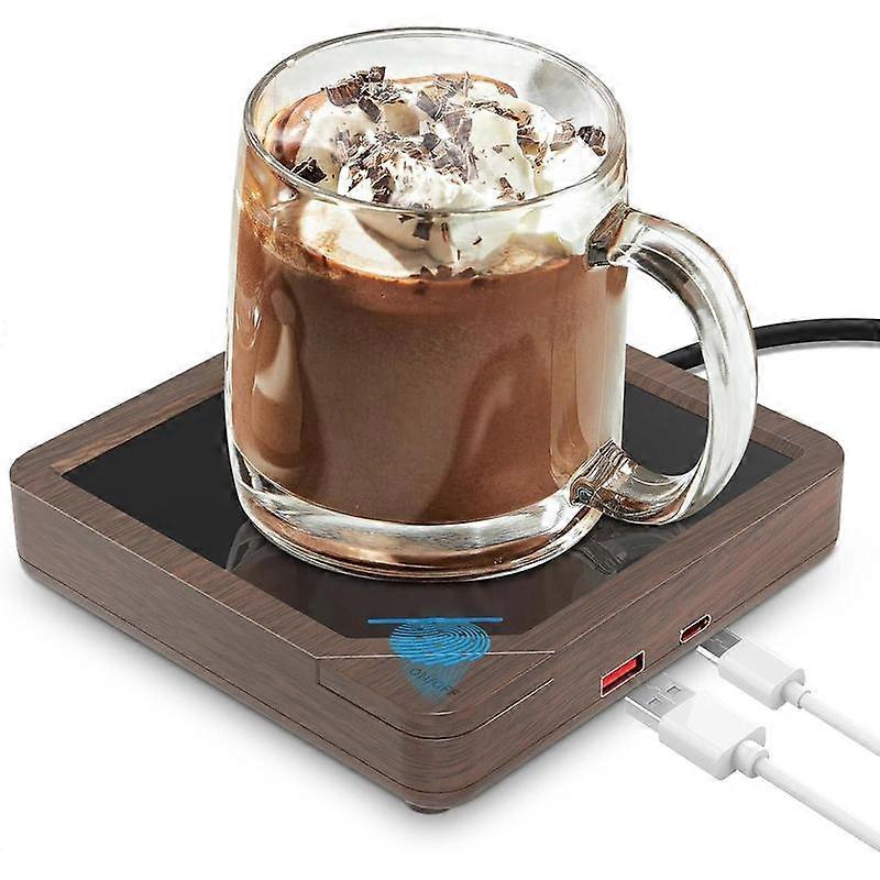 Coffee Mug Warmer with 2 USB Ports: Auto Shut-Off Candle Wax Warmer - Heated Beverage Coffee Accessories for Home Office Desk - U1 Gray