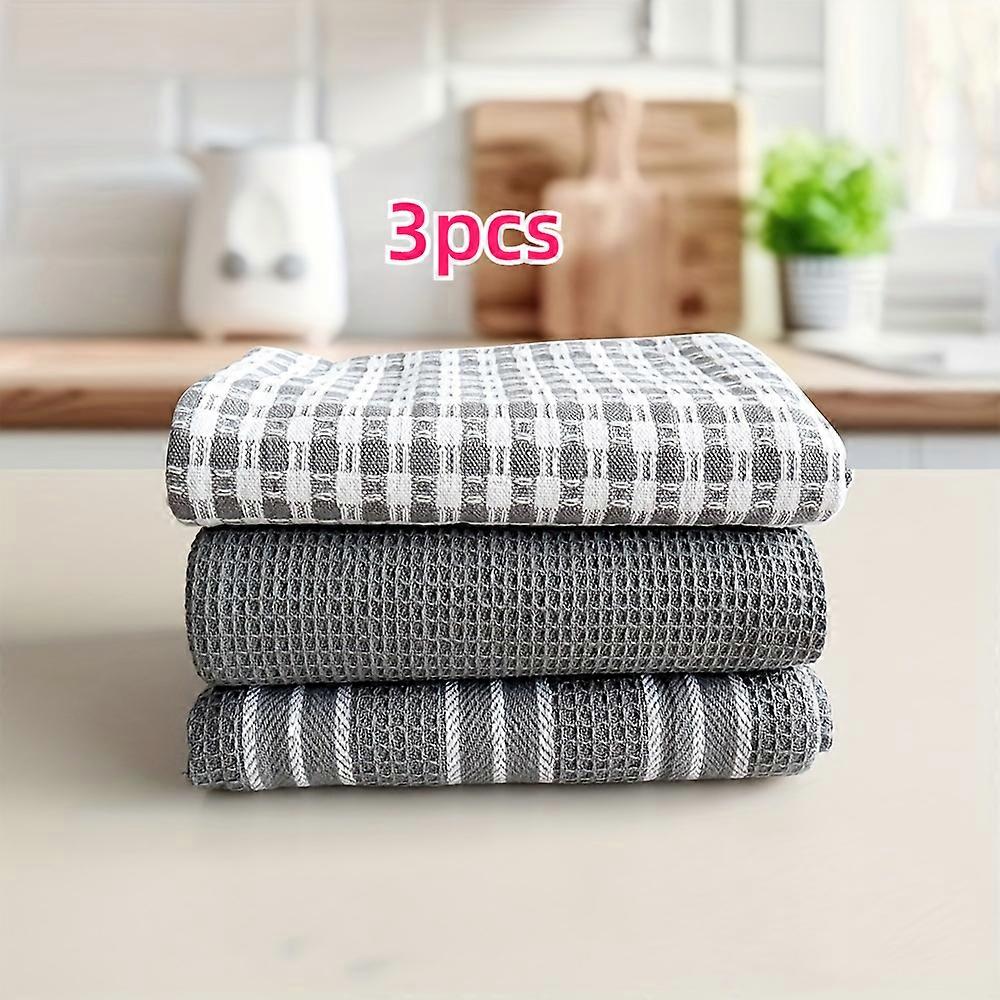 3pcs/set Solid Color Waffle Premium Kitchen Towel Set Suitable for Wiping Dishes Absorbent Tea Towel Kitchen Dish Towel