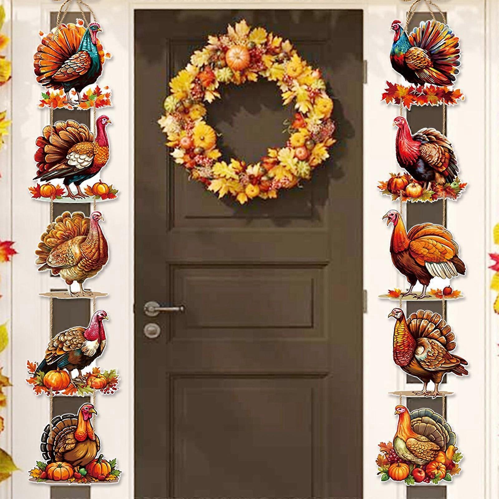 YANHAIGONG Thanksgiving Decorations, Fall Maple Leaf & Pumpkin Porch Sign Banner, Compatible with Autumn Harvest Party Backdrop for Front Door Wall