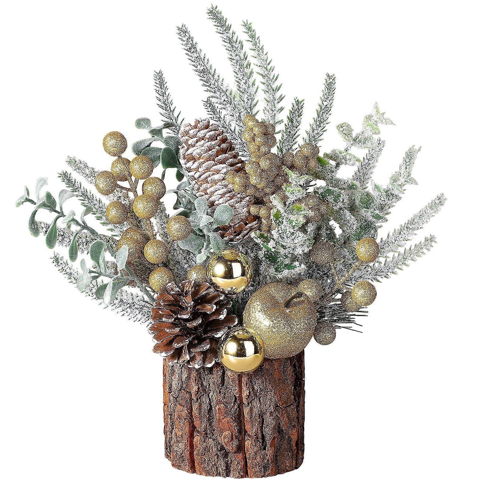 Ayieyill Small Christmas Tree, Artificial Mini Tabletop Decor with Ornaments, Gold, for Xmas Party & Thanksgiving (compatible with)