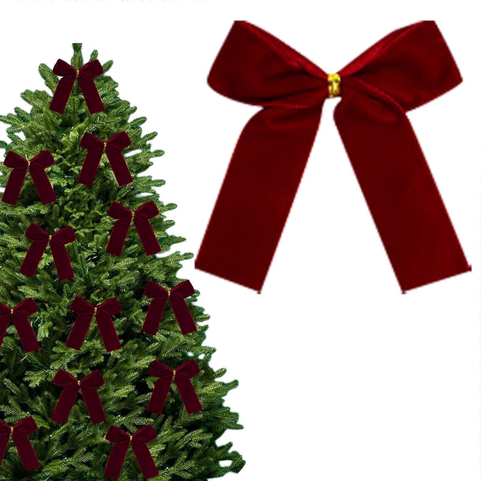 Christmas Ornaments, compatible with vintage festive decor, easy-to-use tree bows for front door wreath, walls, home. 1pcs, short style (wine).