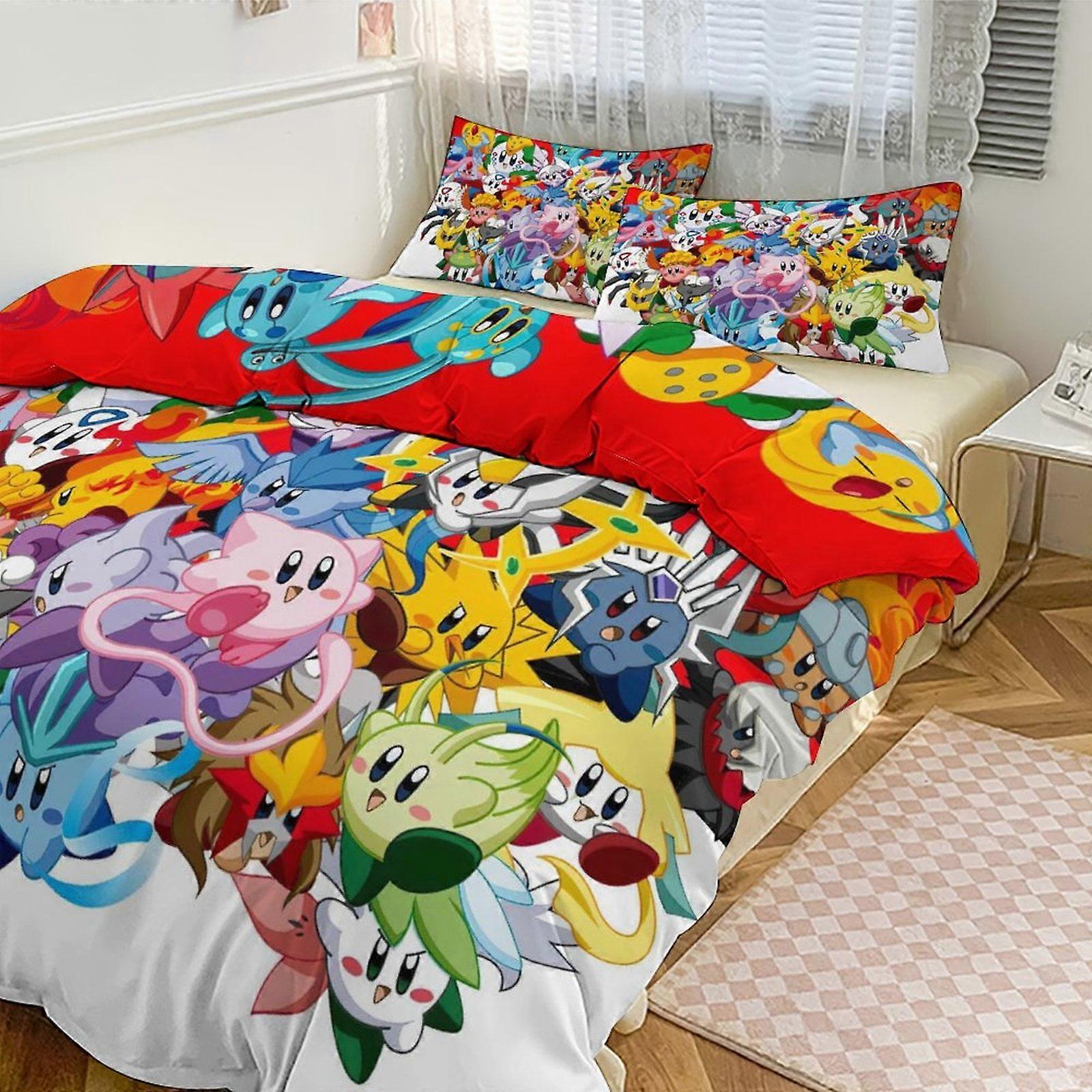 3Pcs Pokemon Comforter Set Cartoon Cute Bedding Set Soft Bedding Set with 1 Comforter Cover and 2 Pillowcases,Color 1, 79"×90"