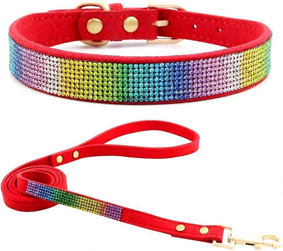 Derest Cute Sparkling Pet Collar for Dog Cat Puppy, Soft Suede Leather Bling Rhinestone Crystal Jewelry, Dog Leash Combo Set