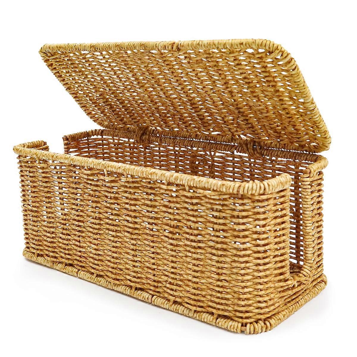 Cable Management Box Handmade Rattan Cable Organizer 2 Open Slots Cords Hider Box Under Desk Cord Organizer for Computer Router USB Hub & Power Strip