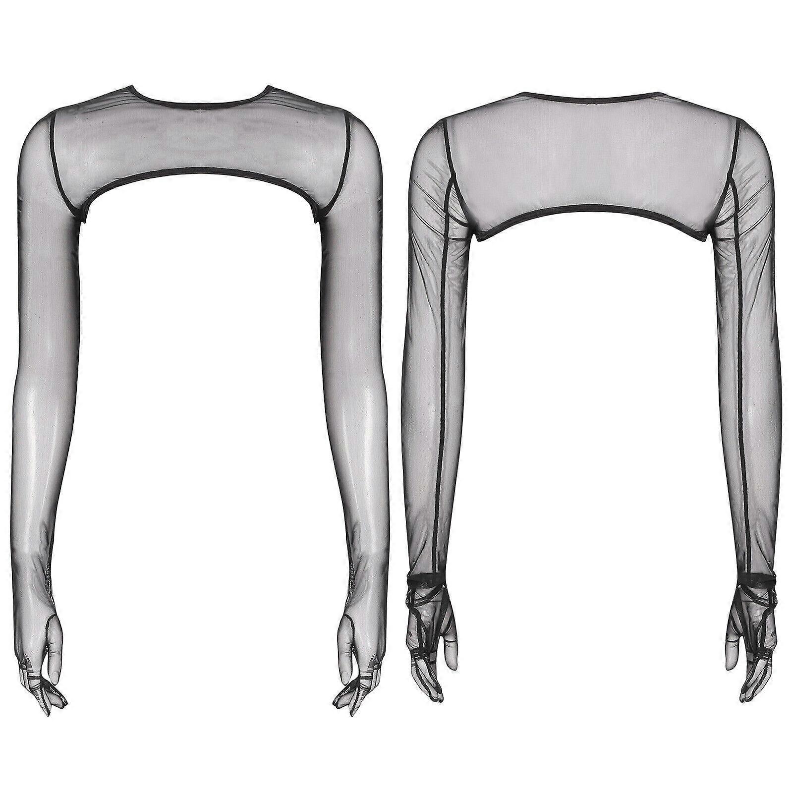 iEFiEL Women See-through Open Chest Gloves Tops Long Sleeve Open Front Mesh Crop